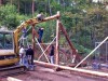 壁の材料となる木や土は、どうしても手に入らないもの以外は全て現地調達。基礎組みの木材は、塩害で立ち枯れして行き場を失ったスギや震災がれきを使う。「その土地にもともとあった材料で作り、役目が終わればまたその土地の自然に帰る。今だからこそ、やるべきこと」と挟土さん。10月には、本番に向けて高山市郊外で幅約13メートルの実物大サンプルを作り、工程を再確認した。