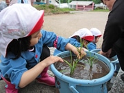 新しい金山小の校章と校歌を掲げる松山正人校長