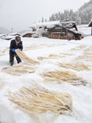 大野郡白川村鳩谷の山林にあるカヤ場で11月10日、合掌造り家屋の屋根材に使うカヤを刈り取るイベント「われらが紡ぐ白川郷かややねプロジェクト〜秋の一斉茅刈り〜」が行われた。