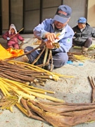 大野郡白川村鳩谷の山林にあるカヤ場で11月10日、合掌造り家屋の屋根材に使うカヤを刈り取るイベント「われらが紡ぐ白川郷かややねプロジェクト〜秋の一斉茅刈り〜」が行われた。