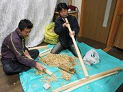 大野郡白川村鳩谷の山林にあるカヤ場で11月10日、合掌造り家屋の屋根材に使うカヤを刈り取るイベント「われらが紡ぐ白川郷かややねプロジェクト〜秋の一斉茅刈り〜」が行われた。