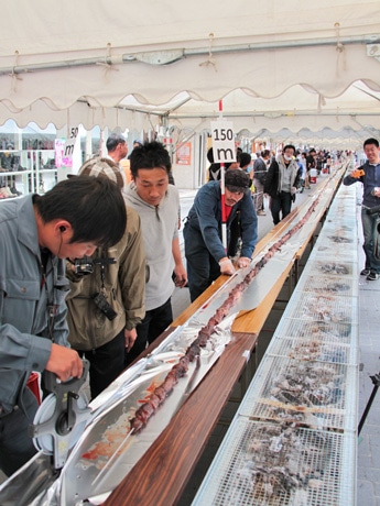 焼きあがった150メートル超の飛騨牛串