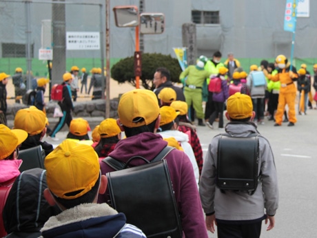 いつもと違う校門前の違和感に気付く児童たち