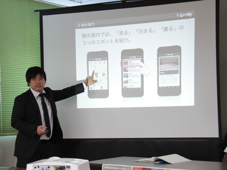 「あったら便利だなと思っていた観光アプリが完成した」と自信を見せる白川郷アプリ企画開発者の小澤敏之さん