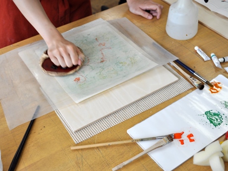 本格的な道具や素材を使って「干支の午」や「ぽち袋」を制作する木版画ワークショップ(写真提供=東京藝術大学)