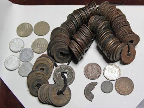 本堂床下から見つかった200枚以上の古銭