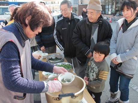 菜の花や大槌町産わかめなどをふんだんに使ったみそ汁が来場者全員に振る舞われた