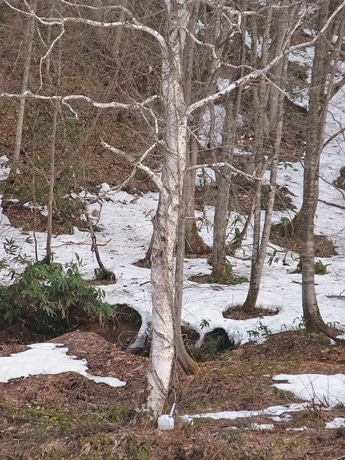 標高約1000メートルの飛騨市山之村地区に群生するシラカバ(写真中央)
