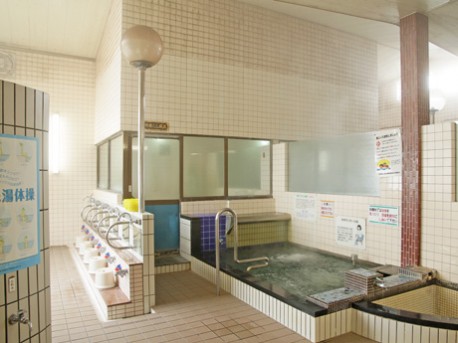 開業当時からあるトレードマークの「水銀灯」が特徴的。このほか「赤外線湿式サウナ」など変わり風呂がある