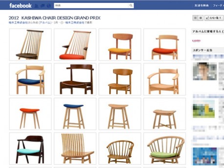 「2012 KASHIWA CHAIR DESIGN GRAND PRIX」のサムネイル画面からは「商品名」「大きさ」「材質」「価格」などの情報も見られる