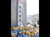 神岡町公民館(飛騨市神岡町)に10月7日、梶田章・東京大学宇宙線研究所長のノーベル物理学賞受賞を祝う懸垂幕が掲げられた。