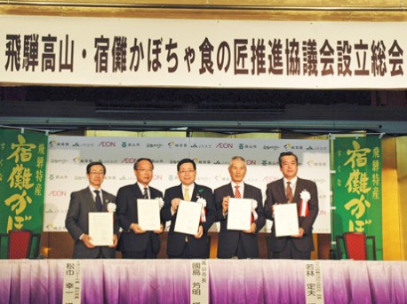 連携趣意書を手にする若林会長(写真右から2人目)と各代表者ら