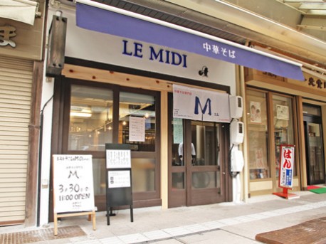 一風変わった「M」の暖簾の下には「高山ラーメンではない」という張り紙も