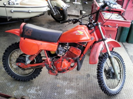 今から30年以上前に生産されたという「CR80」。可動するものは日本でも数少なく貴重なオフロードバイクだという