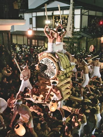 ちょうちん行列に続きゆったりと太鼓の音を響かせながら巡行する大太鼓やぐら