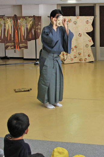 能面を手に表情の変化を実演する武田文志さん