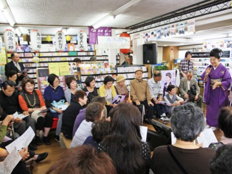 佐田さん本人による歌唱指導の様子。地元ファンからは「最後の言葉の発音を詳しく教えて」などの質問も飛び出した。