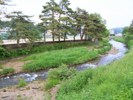 「合崎橋」の下には「白線流し」の舞台となる大八賀川が流れる
