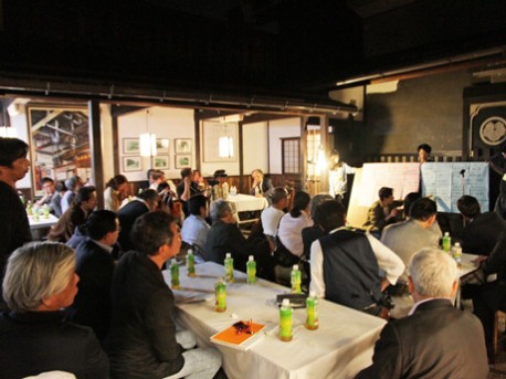 フォーラム前日行われた意見交換会の様子。呼びかけ人メンバーほか、地元民合わせて約50人が参加し、「内の目」「外の目」双方から見た「飛騨にいるモノ・いらないモノ」のアンケートを元に、町歩きの振り返りや、それに対する具体的な意見交換を行った。