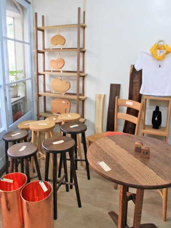 一番人気の飛騨地方のクリ材を使用したゴーフレットスツール(12,600円〜)など、良い材料を高度な技術で仕上げた製品の数々。