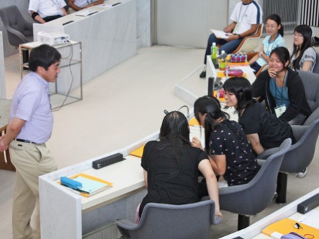 名古屋工業大学教授・高木繁さんの「化学講義」を受ける受講生ら(昨年の様子)