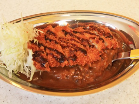 初来店客の9割近くが注文するという一番人気のLカツカレー(780円)。フォークで食べるスタイルの理由は、豚肉が硬かった昔の時代の名残りだという。