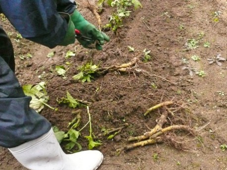 コウゾに次いで手すき和紙に欠かせない原料トロロアオイからは粘度の高い液体が取れる