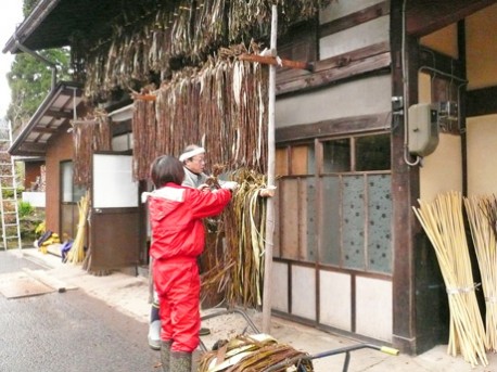 「たくり」は「束ねる」の意。外皮をむいたコウゾは家の軒先で乾燥させた後、内皮の白い部分のみ分離し使用する