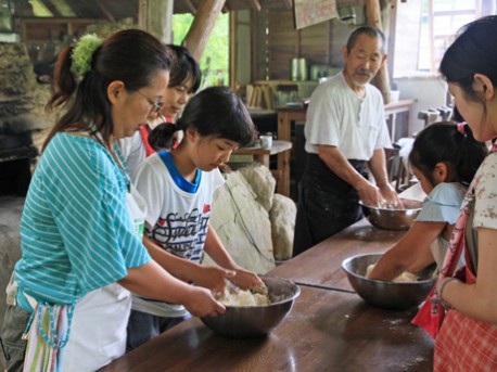 初めてのピザ生地作りに挑戦する参加者親子たち