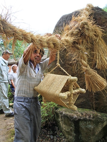 女の子の健康と成長を願う「糸車」のワラ飾り