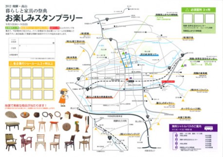 イベント会場や出展企業ショールームを巡ると抽選で家具などが当たるスタンプラリーを開催する