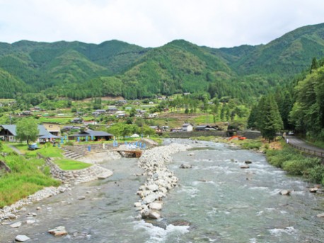 湯けむり橋から見た馬瀬川観光ヤナ