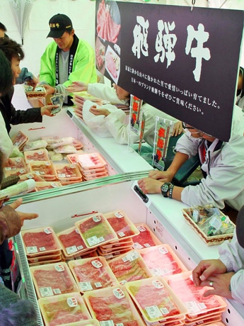 高品質の飛騨牛をまつり特価で販売する精肉コーナー(昨年の様子)