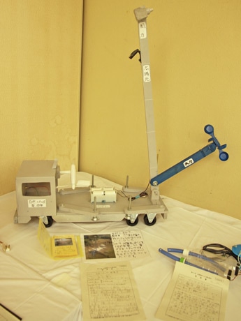 エネルギーの無い緊急時、トラック1台に搭載した水力、風力、太陽光発電機を使って電気を起こし蓄電するという「自然エネルギー発電車」。この作品を発案した小2男児は「いつか人の役に立つ装置を作りたい」と語る