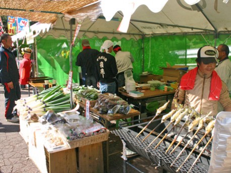 地元産の川魚や野菜・キノコなどを販売する特産品バザー