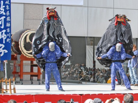 肩車、前転、後転などアクロバティックな動きが見どころの「数河(すごう)獅子」