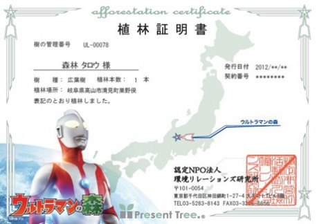 植林イベント参加者に贈られる「ウルトラマンの森」仕様の植林証明書(見本) ©円谷プロ