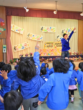 仁井山さんの曲の振り付けに合わせ盛り上がる園児たち
