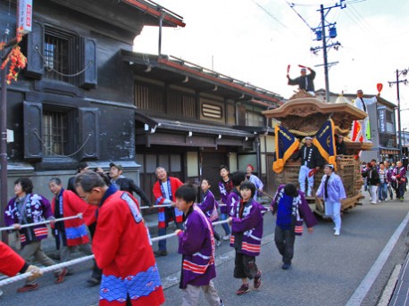 飛騨古川の町並みをゆっくり進む岸和田のだんじり