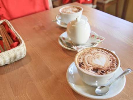 ラテアートをあしらったクリーミーなカプチーノ。