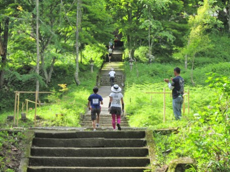 100キロコース終盤に登場し「最大の難所」との呼び声が高い「千光寺」。急な坂道を上りたどり着いた末、突如現れる石段が選手たちに試練を与える