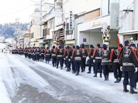 高山市街地行進に向かう高山支団の団員たち。昨年は24人(男性22人、女性2人)が入団した