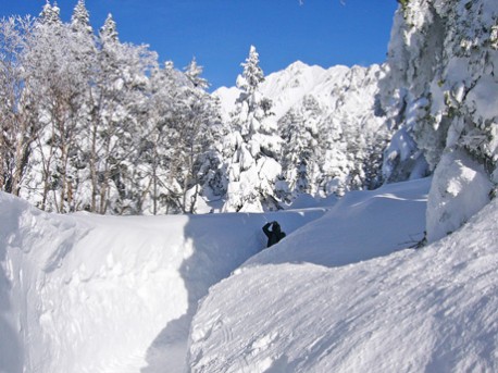 辺り一帯をオオシラビソやダケカンバの樹氷が取り囲む「雪の回廊」
