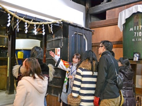 酒蔵ガイドの案内で、現在仕込み最盛期を迎えている酒造りの様子が見学できる(昨年の様子)