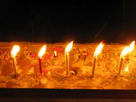 「千本ろうそく」は、お願いをする時には白いろうそくを、御礼参りには赤いろうそくを灯す。
