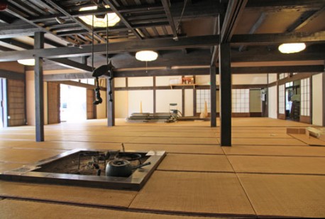 いろりのある古民家の広間がライブ会場