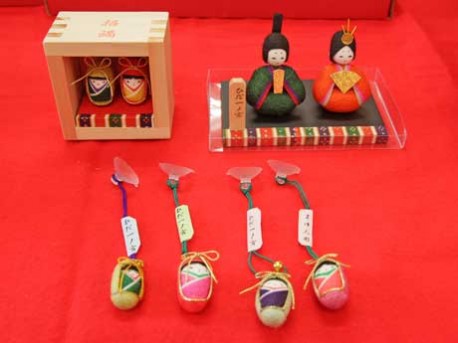 写真左上から=「枡びな」(1,100円)、「繭びな」(1,700円)、「まゆっ子」(1個=350円)