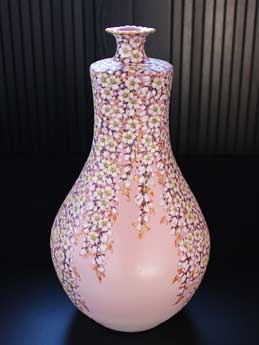 「色絵桜画薄紅瓢肩四方壺」