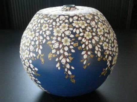 「色絵桜画縹肩四方壺」