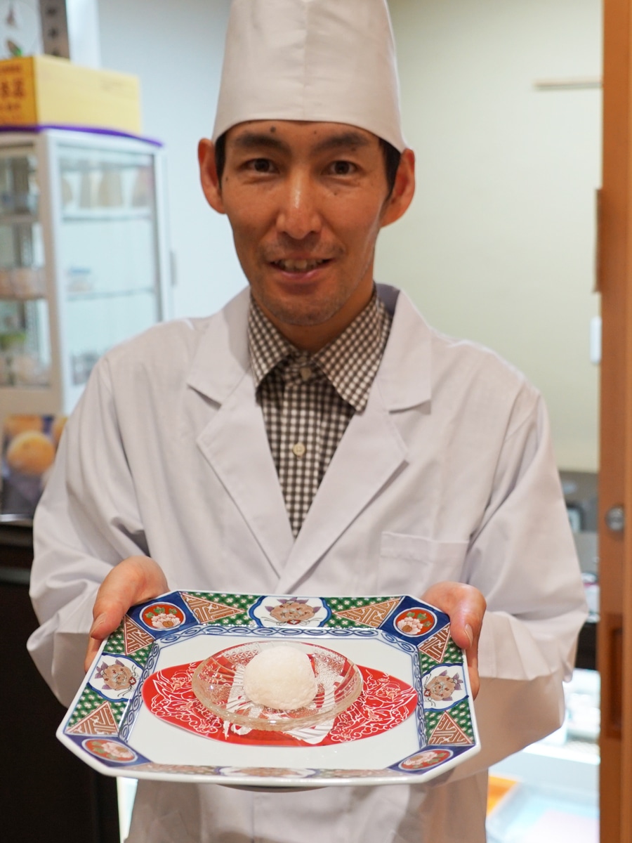 「肘祭り」当日から販売を始める和菓子「神の肘置き」